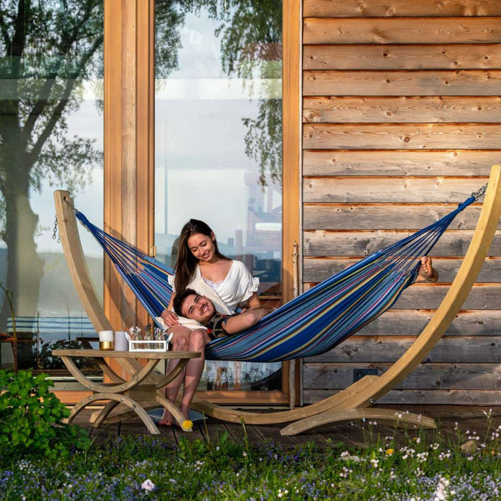 Apollo is a compact, handcrafted wooden hammock stand designed especially for smaller hammocks. It lets you relax in the garden or on the terrace without needing trees or wall mounting 🌿🪵. Compared to larger stands, it saves space while still delivering excellent stability and premium build quality.