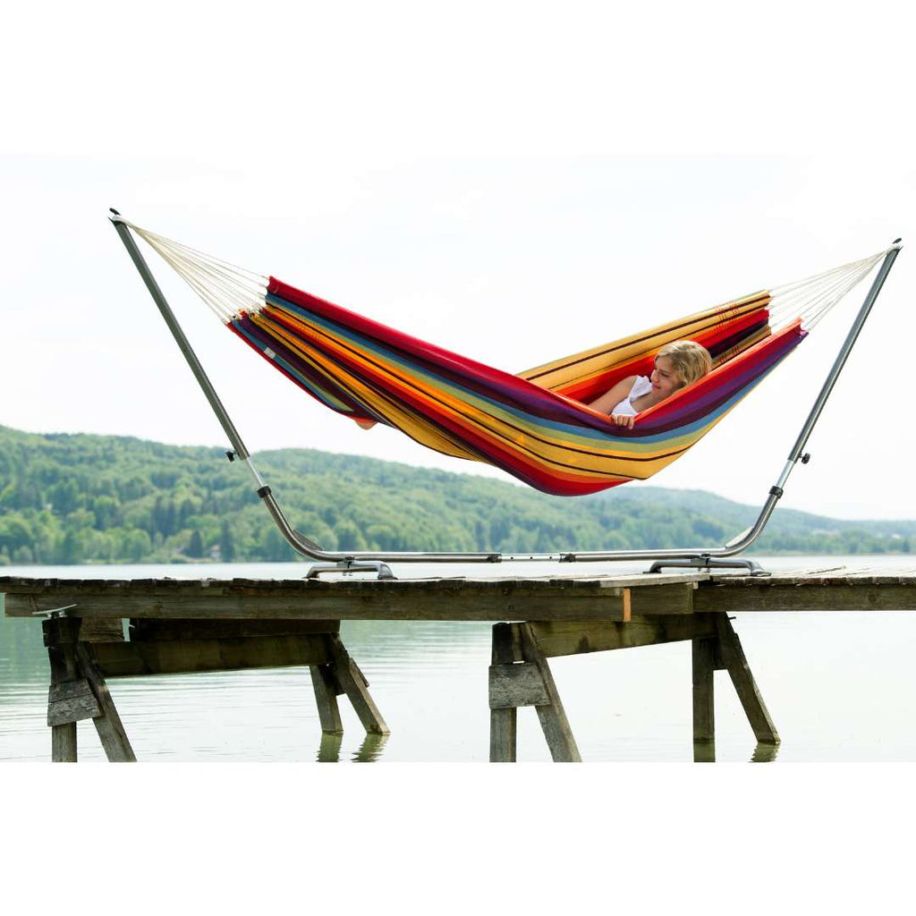The Amazonas Barbados is a comfortable and durable XL hammock, made in Brazil under fair working conditions. This Brazilian hammock is designed for one or two people: the dense, ultra-soft fabric and multiple suspension cords help the outdoor hammock open up beautifully for a weightless feel. It’s ideal as a garden hammock or patio hammock, and it also works as a cozy indoor hammock.