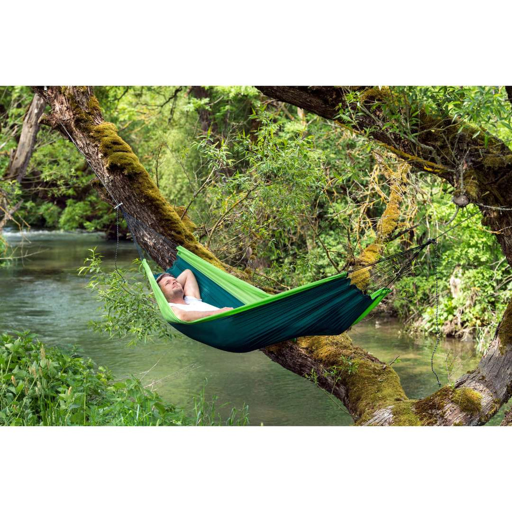 Amazonas Silk Traveller je udobna potovalna viseča mreža iz t. i. padalske svile – to je visokozmogljiv 100 % najlon, ki je hkrati izjemno trpežen, stabilen, zračen in prijeten na koži. Če iščete ultra lahko visečo mrežo za kampiranje, dopust, hribe ali plažo, je Silk Traveller odlična izbira, ker se zloži v majhen paket, tehta samo pribl. 350 g, hkrati pa ponuja zelo udobno ležalno površino.