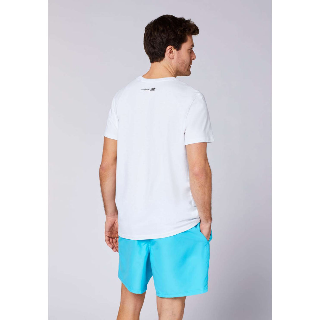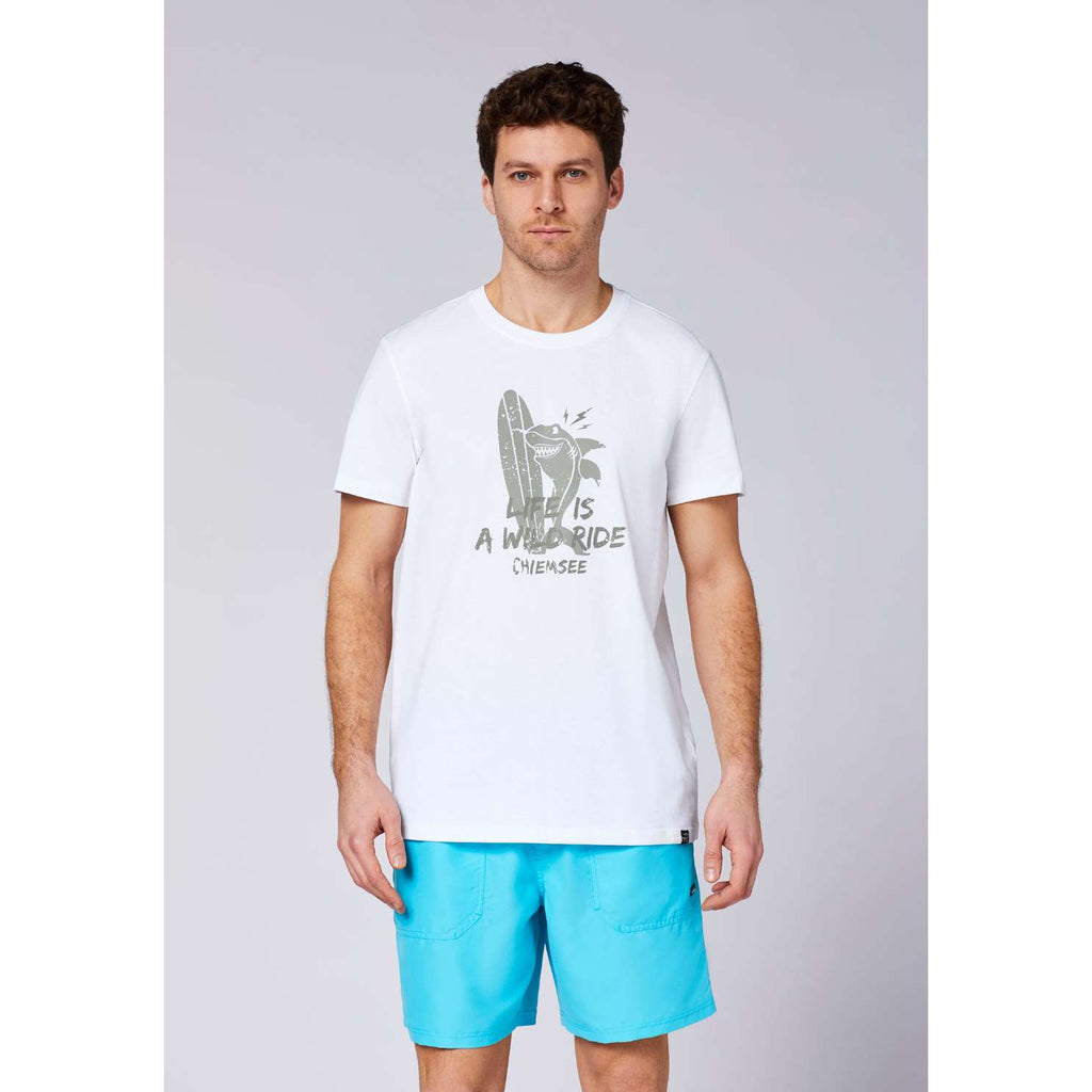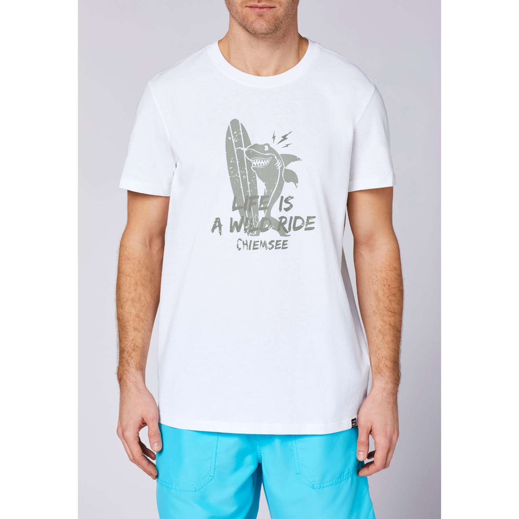 Ta moška bombažna majica Chiemsee je izdelana iz 100 % mehkega single jerseya, ki nudi celodnevno udobje in zračnost. Ima klasičen regular fit, okrogel izrez in kratke rokave, kar jo naredi popolno za tople dni. Spredaj jo krasi izrazit poletni grafični potisk, ki doda sproščen in mladosten videz. Majica je enostavna za vzdrževanje in idealna za prosti čas ali vsakodnevno nošenje.