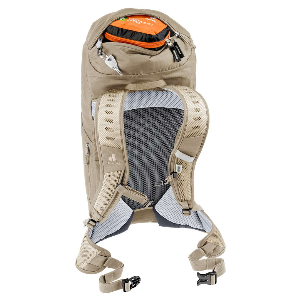 Deuter AC Lite 24 je lahek in udoben pohodniški nahrbtnik, popoln za enodnevne ture. Vsebuje ultra lahek deuterjev Aircomfort hrbtni sistem, ki zagotavlja maksimalno prezračevanje in odlično razmerje med udobjem in težo. Prostoren glavni predal, raztegljivi stranski žepi in namenski žep za mobilni telefon omogočajo dovolj prostora za opremo, medtem ko zanke za pritrditev omogočajo enostavno namestitev pohodnih palic in dodatne opreme. Nahrbtnik je združljiv s hidracijskim sistemom (do 2L) in ima odstranljivo dežno prevleko, ki nudi zaščito v vseh vremenskih razmerah. Poleg tega je pripravljen za pritrditev mreže za čelado, kar povečuje njegovo vsestranskost.