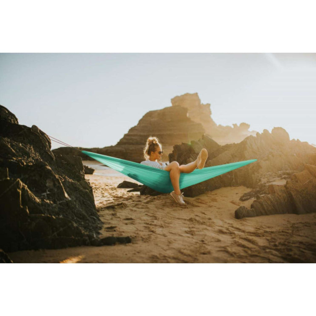 Ultralahki potovalni set viseče mreže z integriranimi pritrdilnimi vrvmi in kavljem – nastavljiva “vse-v-enem” rešitev za izlete, potovanja in spontano sprostitev. Z malo teže in velikim ležiščem je idealen za nahrbtnik, plažo, jezero, vrt ali gore.