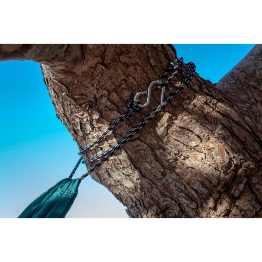 Hitro nameščanje: vrv (cca. 3 m na vsaki strani) ovijete okoli drevesa/pritrdilne točke in zavarujete s kavljem.