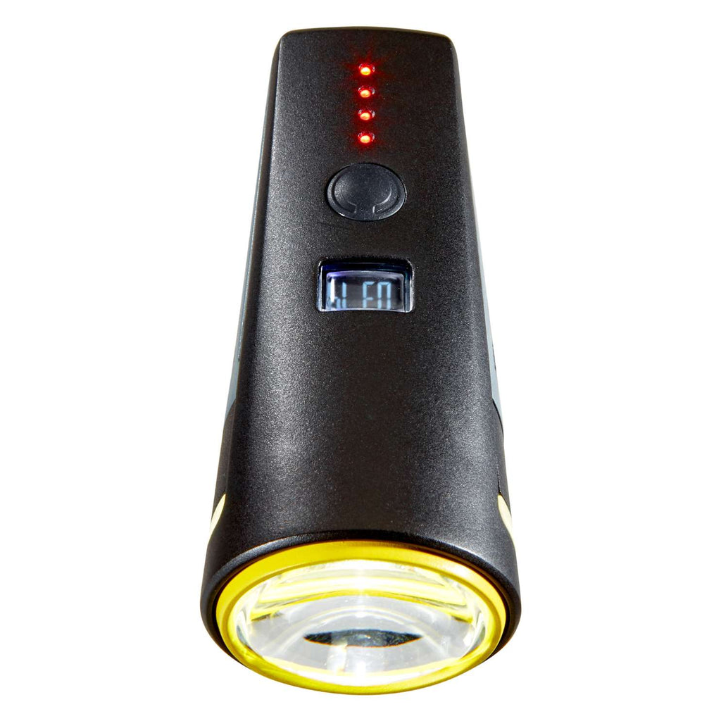 Napredna sprednja kolesarska luč z dvojno lečo, samodejnim svetlobnim senzorjem in zaslonom, ki prikazuje preostali čas delovanja baterije. Namenjena je varnejši vožnji v različnih svetlobnih razmerah, saj se način osvetlitve lahko prilagaja samodejno. 🔋