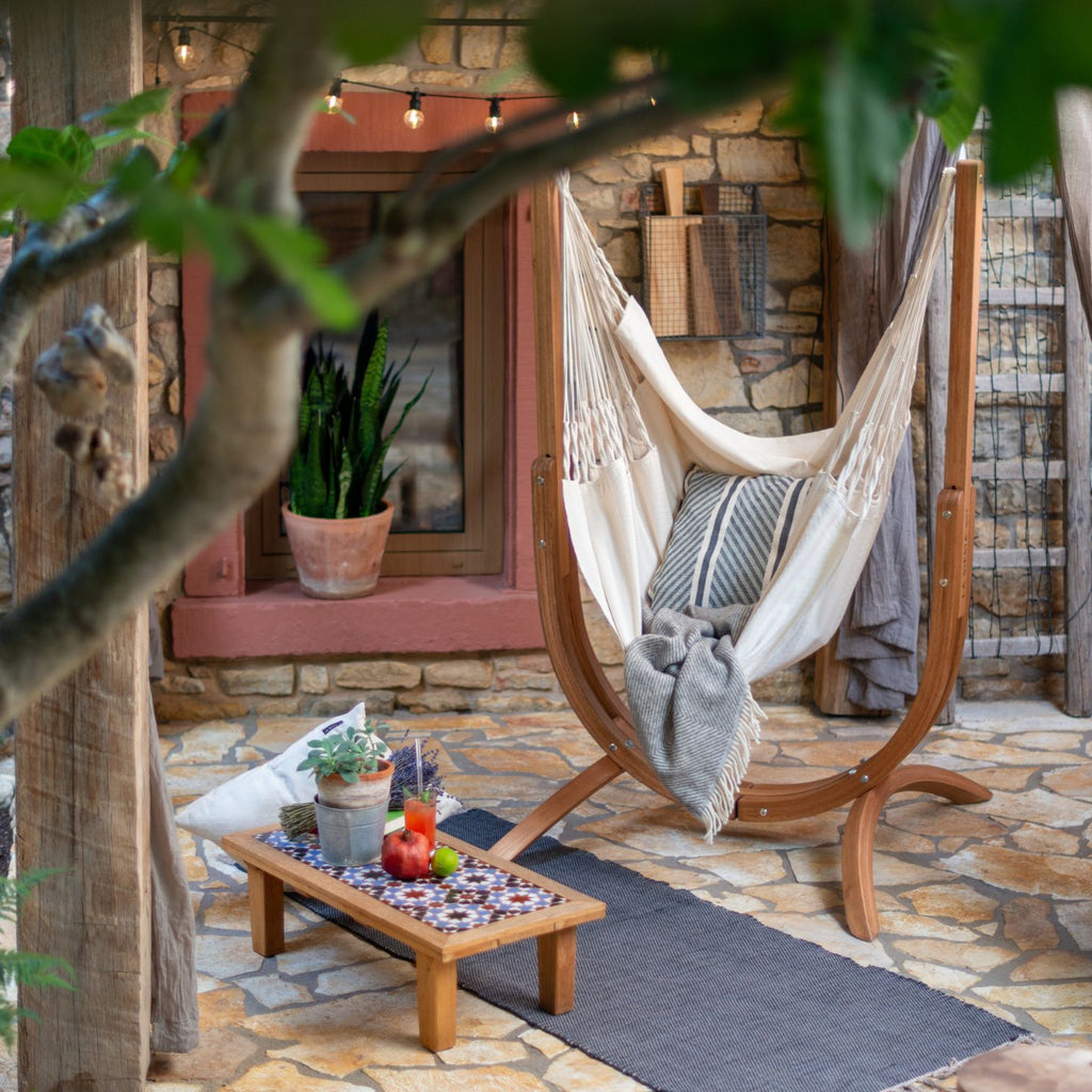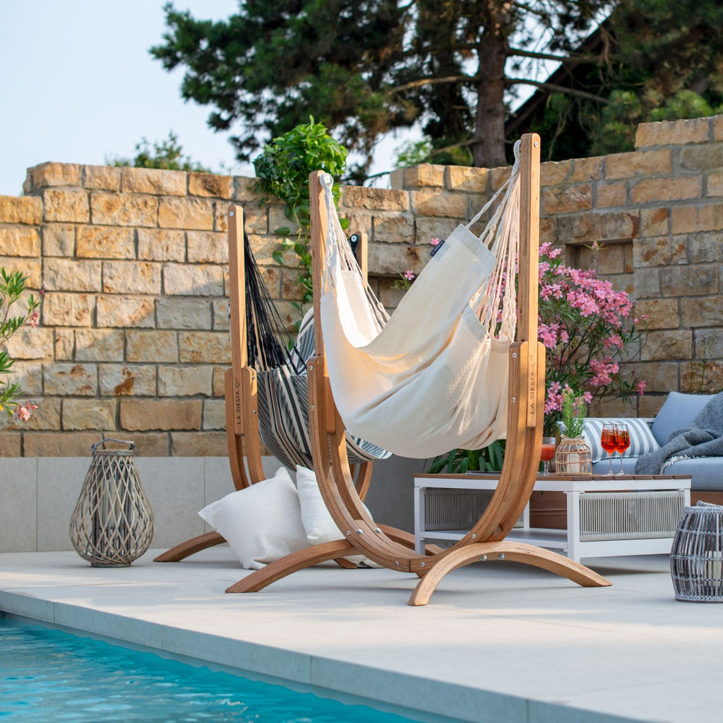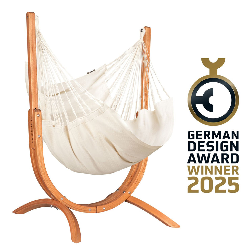 La Siesta Udine - Komplet Viseči Stol Latte Comfort in Leseno Stojalo