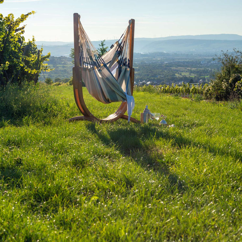 La Siesta Udine Outdoor Sea Salt – Viseči stol iz vremensko odpornega materiala s stojalom iz FSC™ certificiranega evkaliptusa