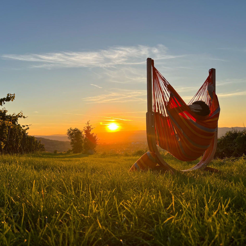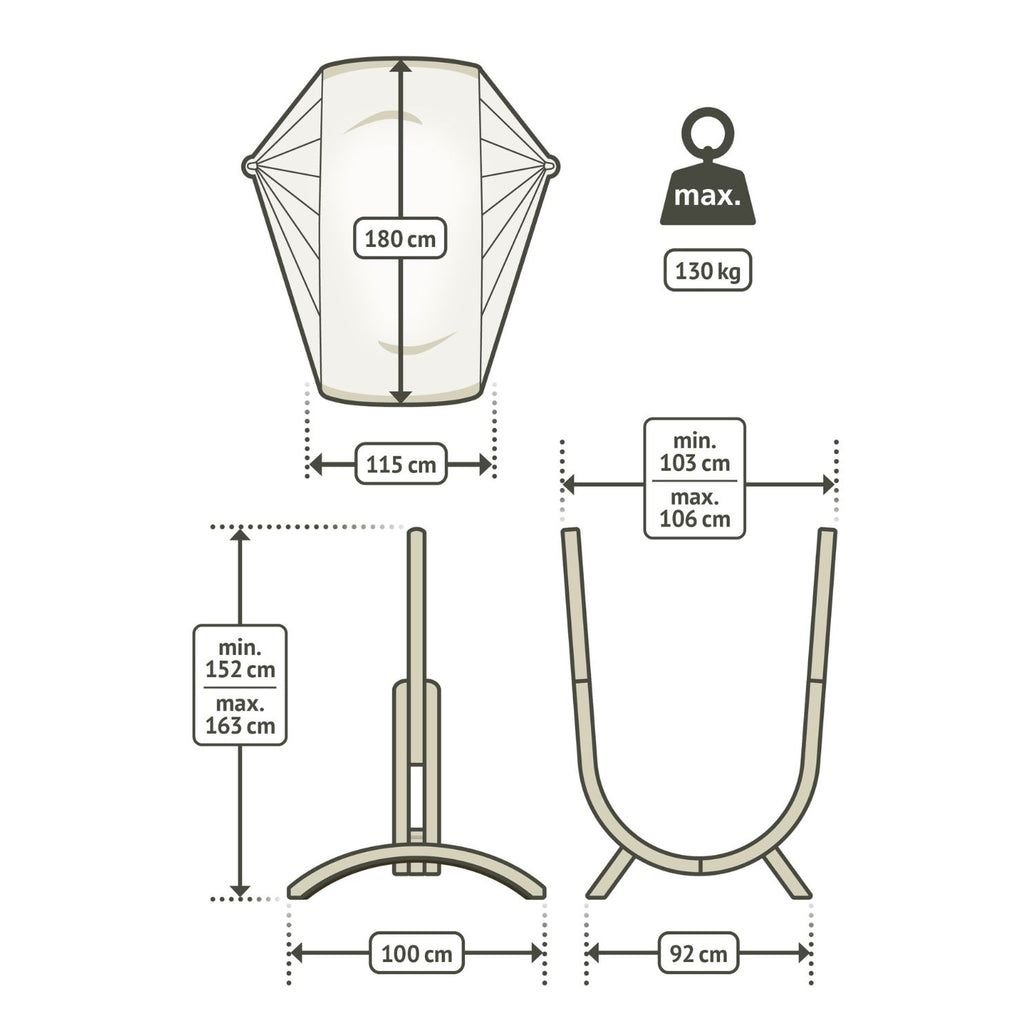 La Siesta Udine - Komplet Viseči Stol Outdoor Toucan Comfort in Leseno Stojalo