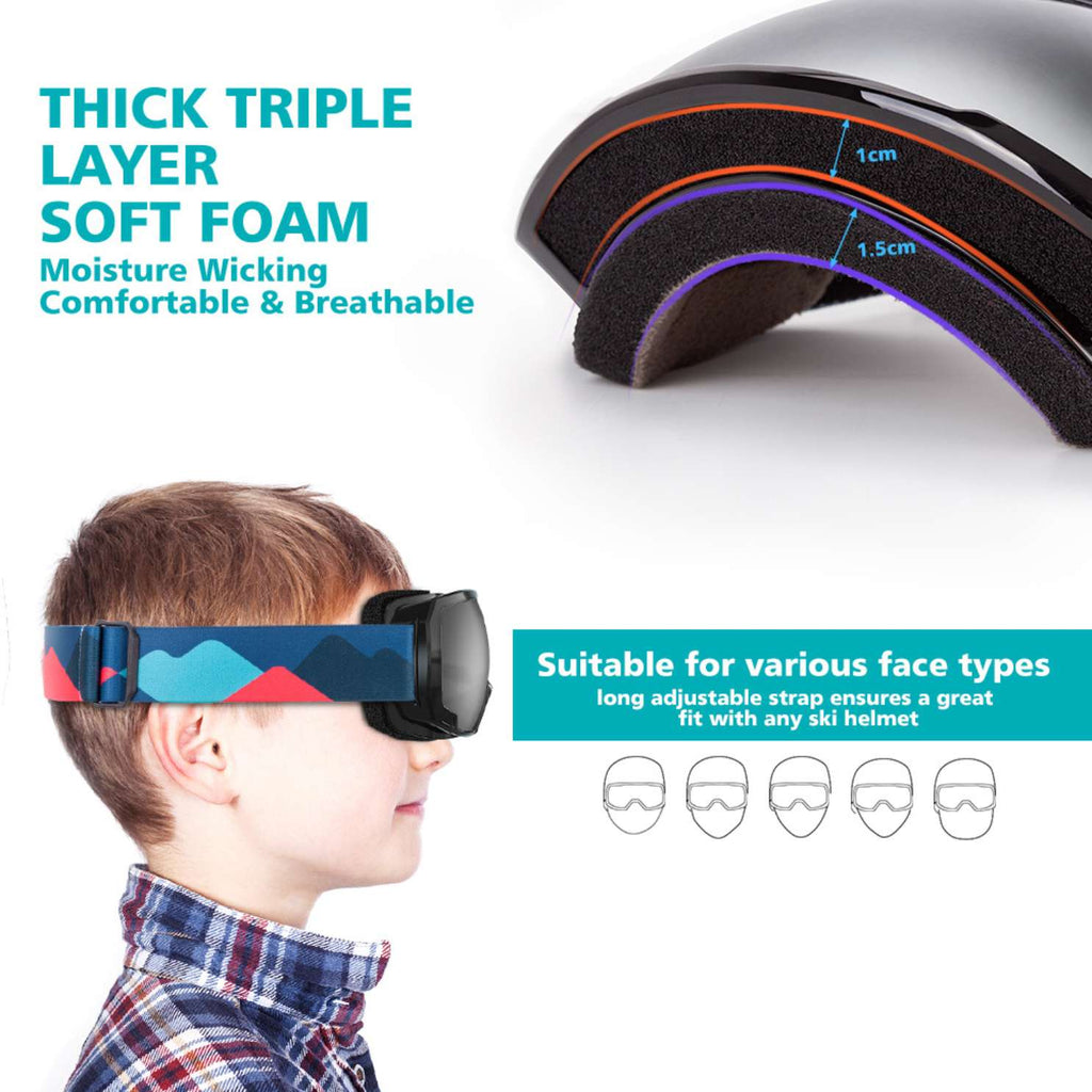 Okvir OTG (»over-the-glass«) pomeni, da so ta otroška očala za deskanje na snegu združljiva z večino dioptrijskih očal vaših otrok! Troslojna mehka pena zagotavlja udobje in zračnost.