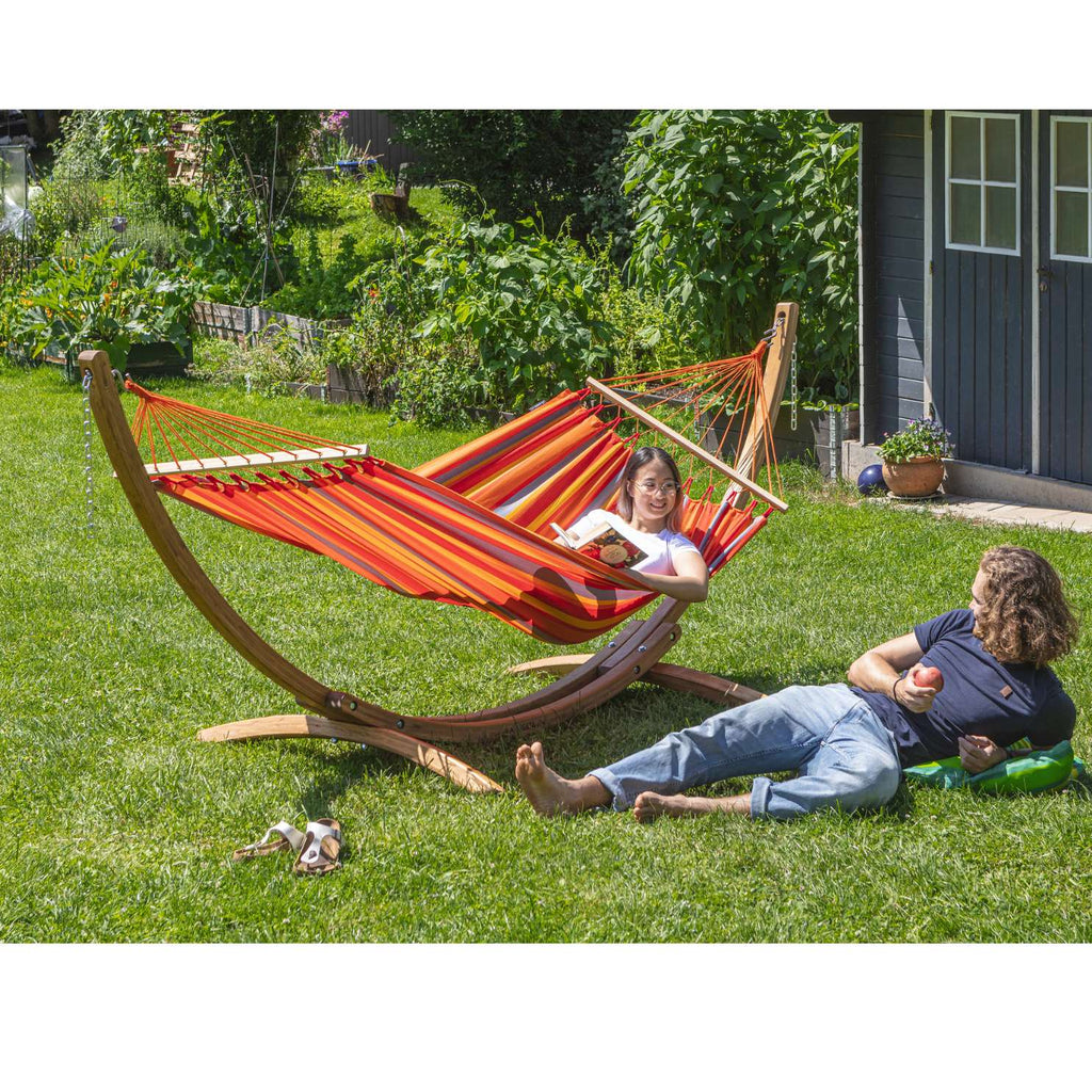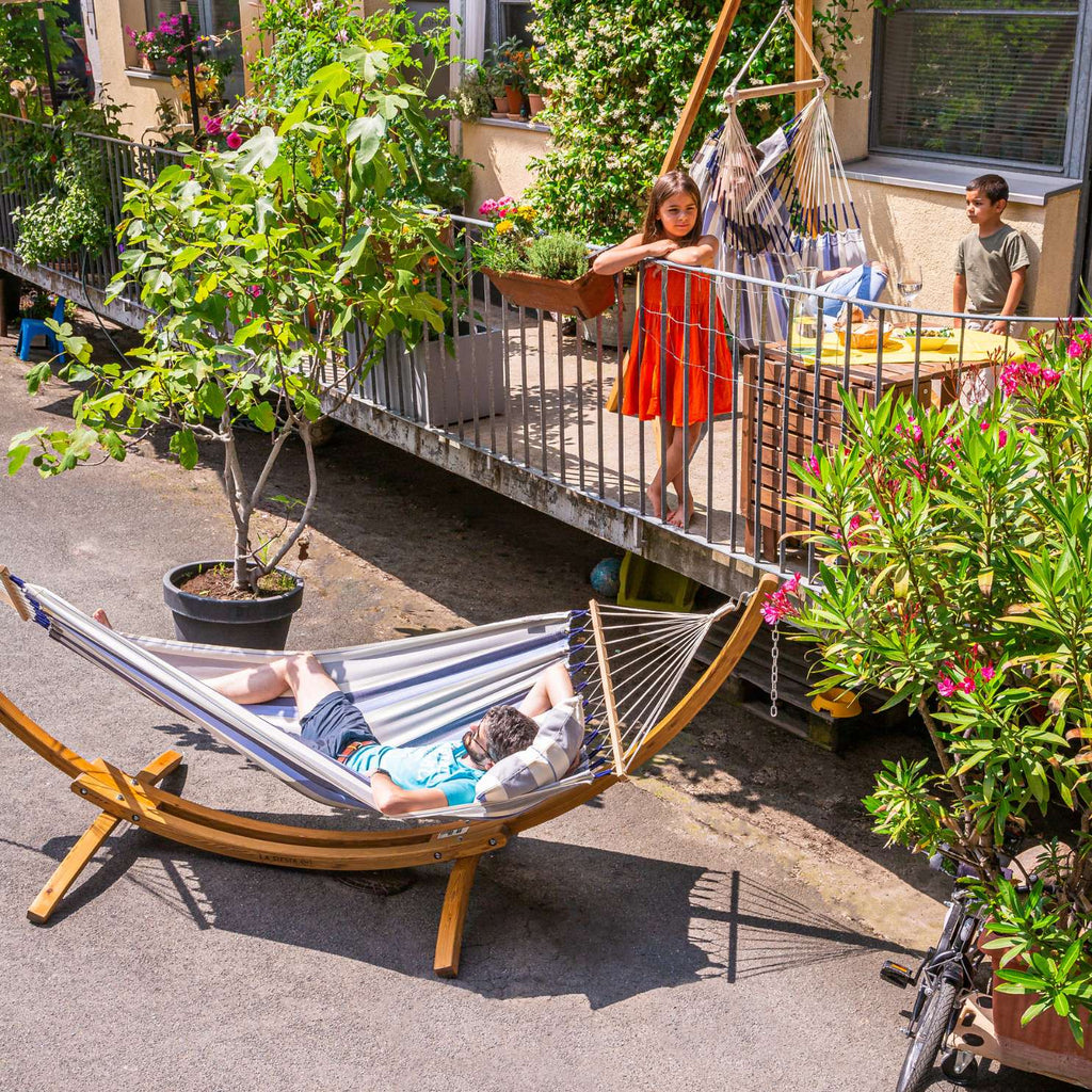La Siesta Alisio Single je viseča mreža s prečko za 1 osebo, ki prinaša južnoameriško udobje v sodobni, dekorativni obliki. Ta viseča mreža za vrt, viseča mreža za balkon ali teraso je izdelana iz vremensko odpornega materiala, zato je odlična izbira za sproščanje na prostem – kot eleganten hammock s palico z naravnim izgledom 🌊😌