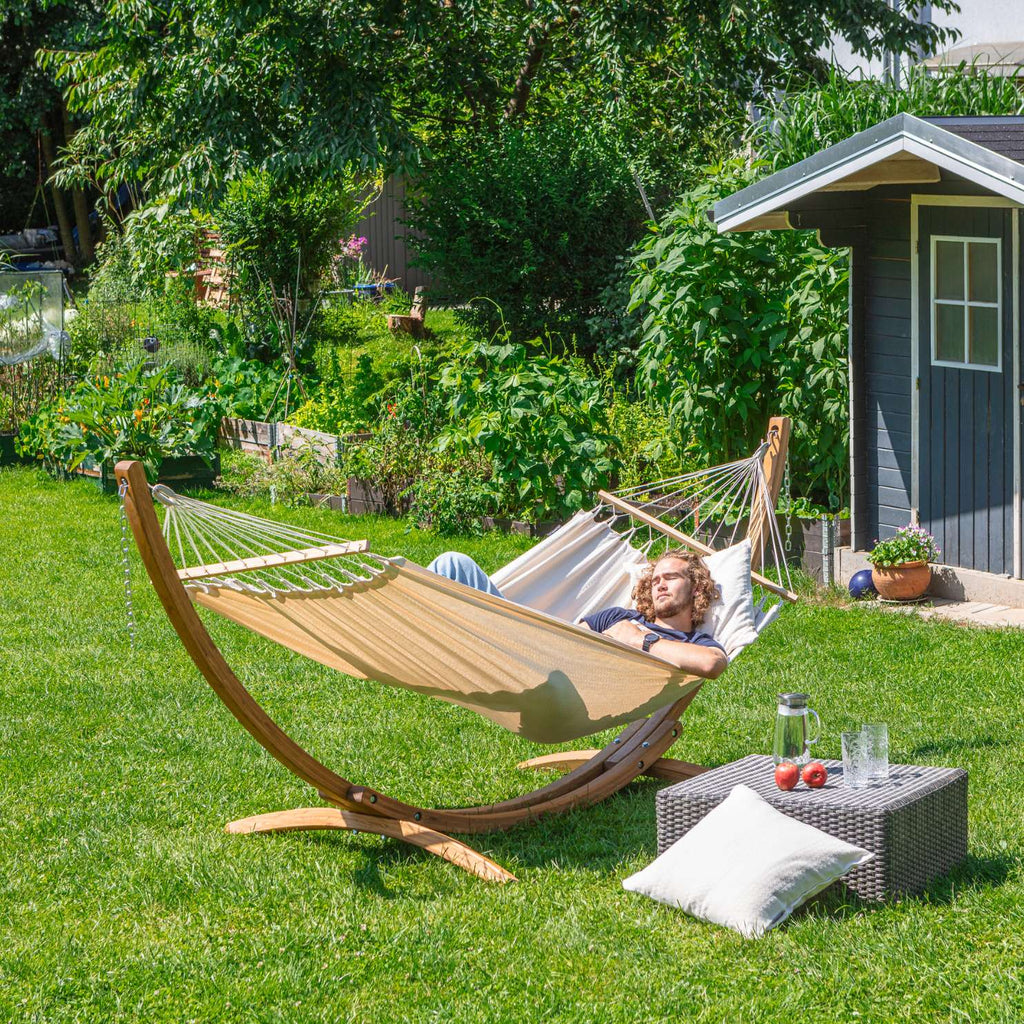 La Siesta Florencia Latte Single je elegantna viseča mreža s prečko, ki združuje udobje klasične mreže in odprt, “razpet” videz mreže s prečko. Izdelana je iz 100% organskega bombaža z GOTS certifikatom, zato je prijetno mehka, zračna in udobna za vsakodnevno sproščanje doma, na terasi ali na vrtu.