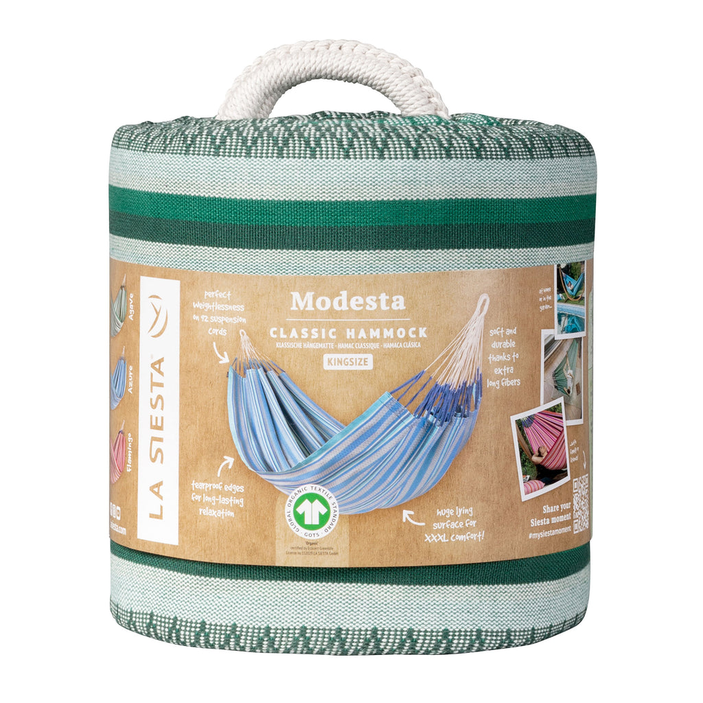 La Siesta Modesta Double je dvojna viseča mreža iz bio bombaža, ustvarjena za sproščanje v dvoje ali za tiste, ki si želijo več prostora. Če iščeš visečo mrežo za vrt, visečo mrežo za balkon ali udobno rešitev za počitek doma, je ta viseča mreža iz bio bombaža odlična izbira. Mehka, zračna tkanina je prijetna na koži, klasična oblika brez prečke pa omogoča najbolj udoben položaj – priporočamo ležanje diagonalno 😌✨