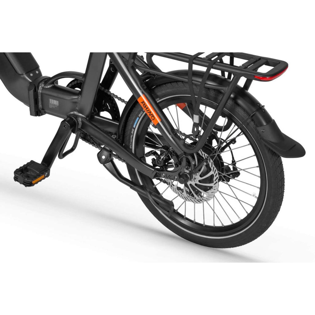 Električni pogonski sistem temelji na preverjeni tehnologiji Bafang, z motorjem v zadnjem pestu, ki je znan po tihem delovanju, visoki učinkovitosti in gladkem delovanju. Rhino je zato odlična izbira kot zložljivo električno kolo za mesto, za dnevne vožnje v službo ali kot praktično zložljivo e-kolo za prtljažnik, avtodom ali javni prevoz.